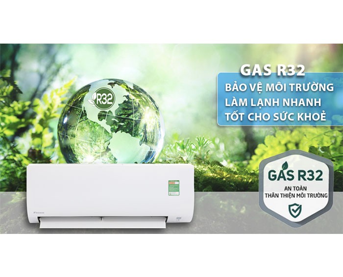 Gas R32: thân thiện môi trường, đảm bảo an toàn cho người dùng và làm lạnh sâu, tiết kiệm điện tốt.