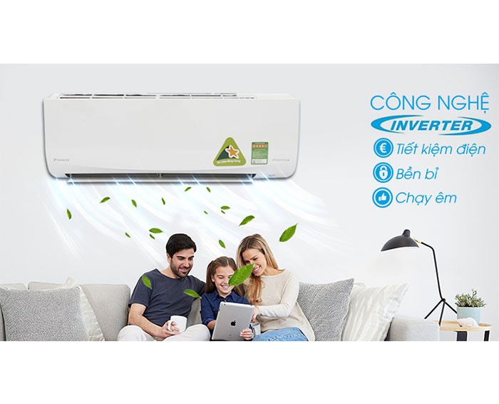 Với máy lạnh này, bạn sẽ không còn phải lo lắng quá nhiều về hóa đơn tiền điện hằng tháng. Máy lạnh Daikin được trang bị công nghệ Inverter giúp tiết kiệm điện năng tối ưu cho người dùng. Đồng thời, công nghệ này giúp máy lạnh làm lạnh hiệu quả, hoạt động bền bỉ và êm ái hơn.