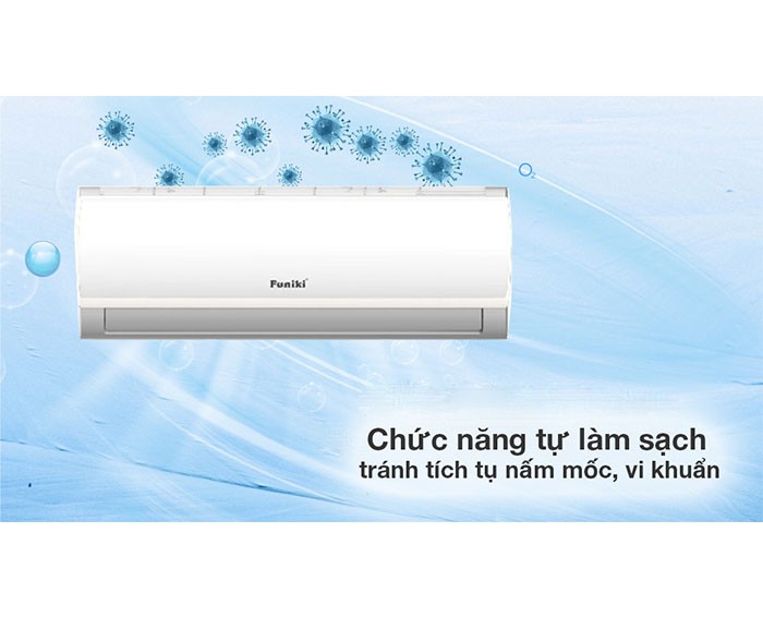 - Tự làm sạch: khi sản phẩm dừng hoạt động, cánh quạt vẫn tiếp tục quay trong 16 phút để loại bỏ chất bẩn, làm khô dàn lạnh, ngăn vi khuẩn, nấm mốc sinh sôi, phát triển. Chức năng tự làm sạch giúp kéo dài tuổi thọ cho máy, tăng hiệu suất làm mát, đảm bảo chất lượng không khí trong phòng.