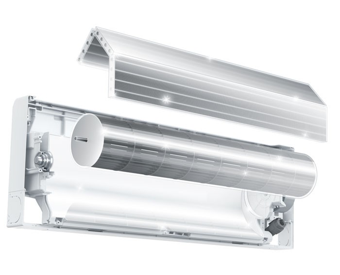 Máy lạnh Mitsubishi Electric Inverter trang bị công nghệ lớp phủ kép chống bám bẩn độc quyền với khả năng ngăn ngừa tích tụ bụi bẩn, khói thuốc và dầu mỡ trên bề mặt giup thiết bị luôn sạch sẽ.