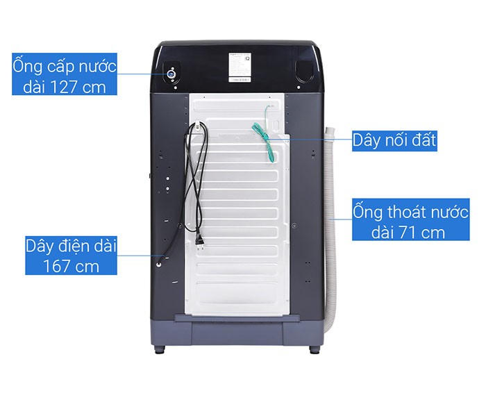 Tiện ích:Hẹn giờ giặt, Khóa trẻ em, Tự khởi động lại khi có điện, Van sử dụng mực nước thấp, Vắt cực khô