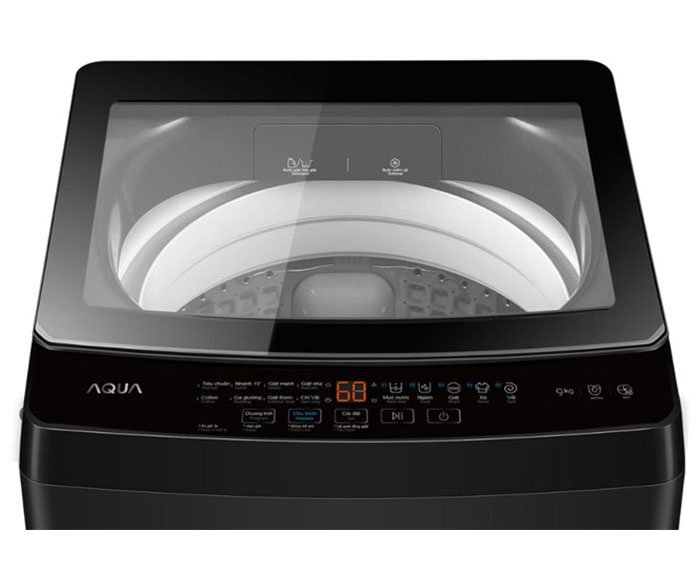 - Máy giặt Aqua 9 kg AWM9-316K(B) thuộc kiểu máy giặt lồng đứng - nắp trên được thiết kế tinh giản với tone màu đen chủ đạo hợp thời và tinh tế.