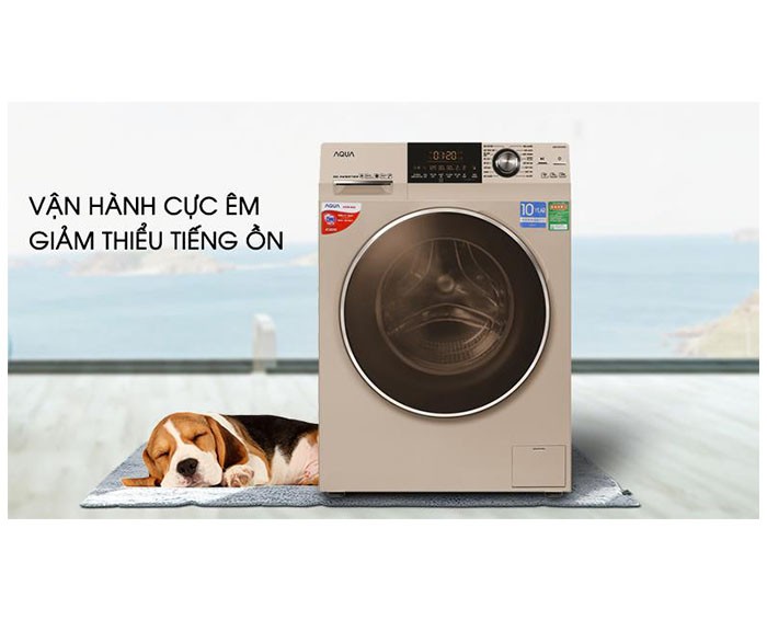 Máy giặt Aqua Inverter 8.5 Kg AQD-D850E N sở hữu sắc vàng kim thanh lịch, trung tính, kết hợp với kiểu dáng cửa trước hiện đại, hứa hẹn sẽ mang đến cho không gian nội thất của gia đình vẻ đẹp tinh tế, sang trọng. Bên cạnh đó, nếu gia đinh bạn có 4 - 5 thành viên và có nhu cầu tìm mua máy giặt thì chiếc máy giặt Aqua 8.5 kg này chính là một sự lựa chọn lý tưởng.