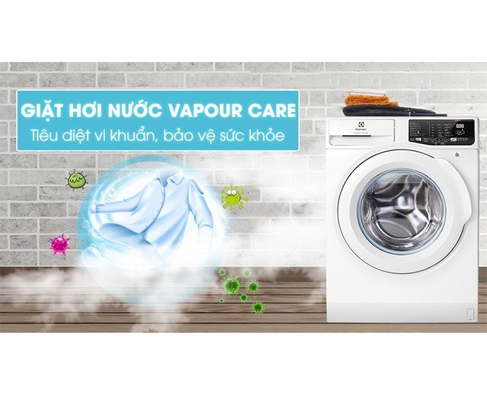 Với khả năng giặt quần áo bằng hơi nước ở nhiệt độ cao, công nghệ Vapour Care của máy giặt Electrolux sẽ giúp tiêu diệt mọi vi khuẩn có trên quần áo, góp phần bảo vệ sức khỏe cho cả gia đình.