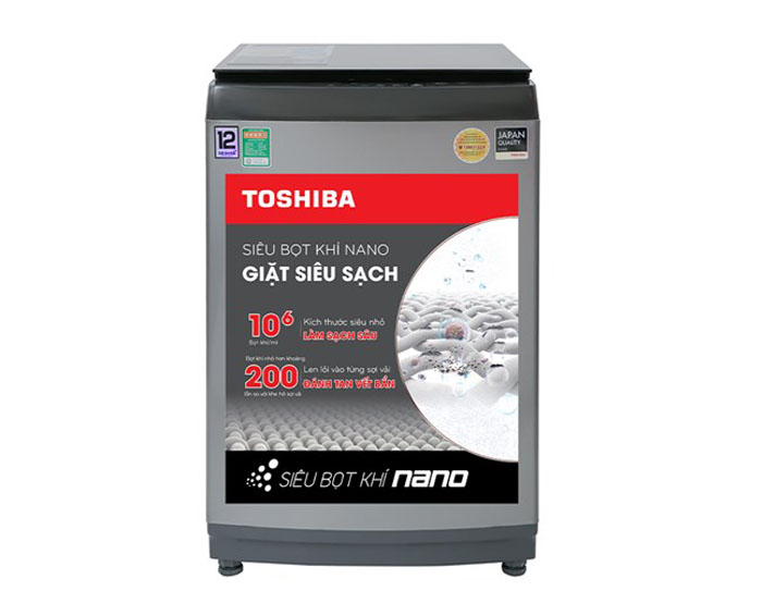 - Máy giặt Toshiba 9 kg AW-M1000FV(MK) thuộc kiểu máy giặt lồng đứng với chất liệu vỏ máy làm bằng kim loại sơn tĩnh điện có độ bền tốt, giảm trầy xước và được thiết kế màu đen nên dễ dàng phối hợp với các nội thất khác trong khu vực đặt máy của gia đình.