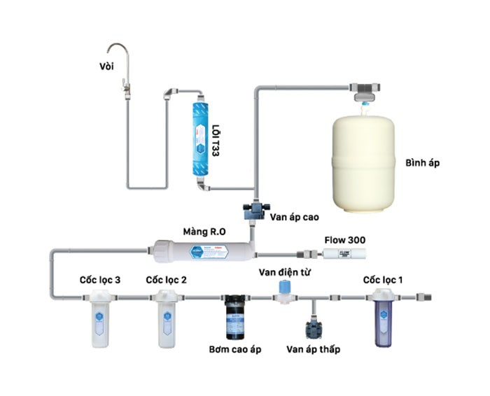 Sau khi kết thúc quá trình lọc và bổ sung khoáng chất, nước sẽ được đưa lên vòi. Tại đây nước có thể uống trực tiếp và không cần đun sôi.