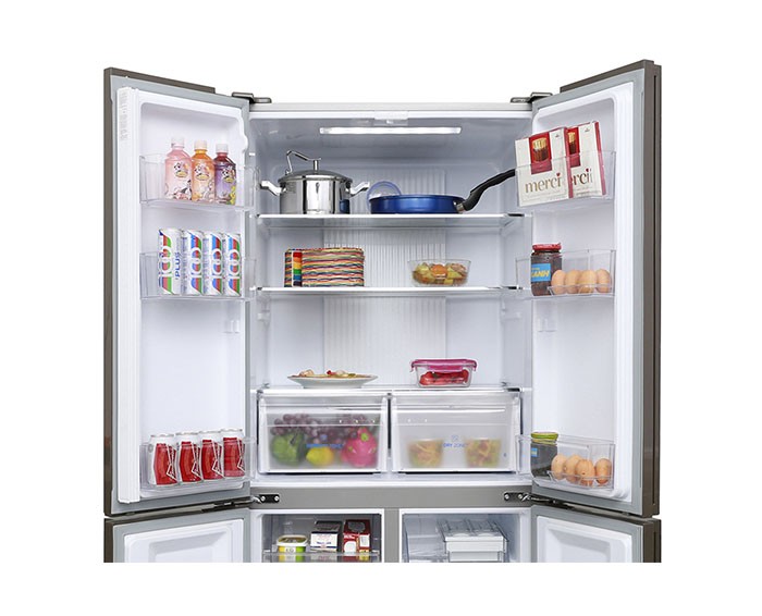 Với thiết kế tủ lạnh kiểu tủ 4 cửa có 1 ngăn lạnh trên, 2 ngăn đông dưới cùng dung tích sử dụng rộng rãi 456 lít phù hợp với gia đình có 4 - 5 thành viên, cho bạn sử dụng thuận tiện, dễ dàng.