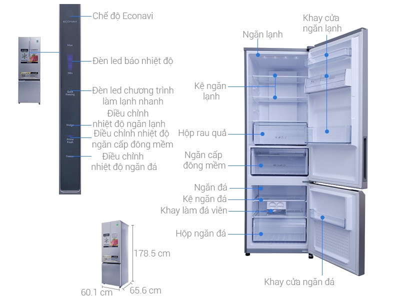 Tiện ích:Bảng điều khiển bên ngoài, Bảo quản thịt cá không cần rã đông