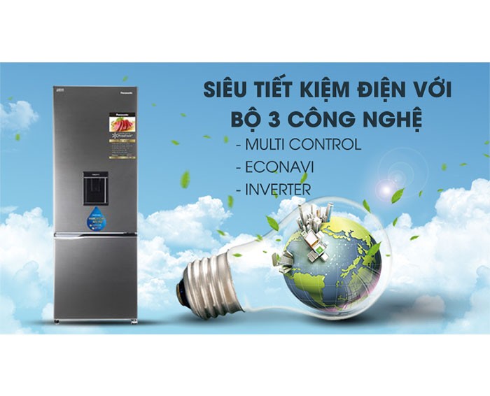 Chiếc tủ lạnh Panasonic 290 lít này còn được tích hợp đến tận 3 công nghệ Multi Control, Econavi và Inverter, mang lại khả năng siêu tiết kiệm điện cho người dùng, khi có thể cảm biến được nhiệt độ bên trong tủ để điều chỉnh hoạt động của máy nén sao cho hiệu quả hơn.
