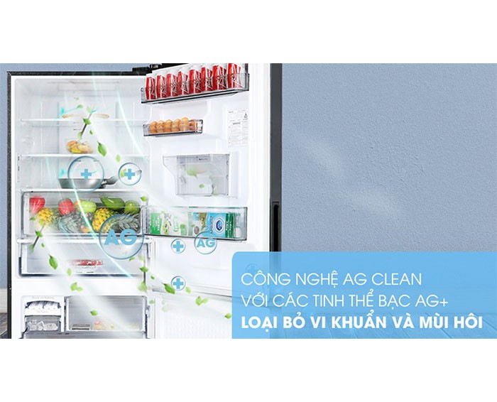 Chiếc tủ lạnh Panasonic Inverter này có khả năng diệt khuẩn, khử mùi mạnh mẽ nhờ vào công nghệ kháng khuẩn Ag Clean kết hợp đèn LED Blue Ag. Công nghệ này sử dụng các tinh thể bạc Ag+ để tiêu diệt vi khuẩn và mùi hôi, trả lại không khí trong lành cho tủ lạnh.
