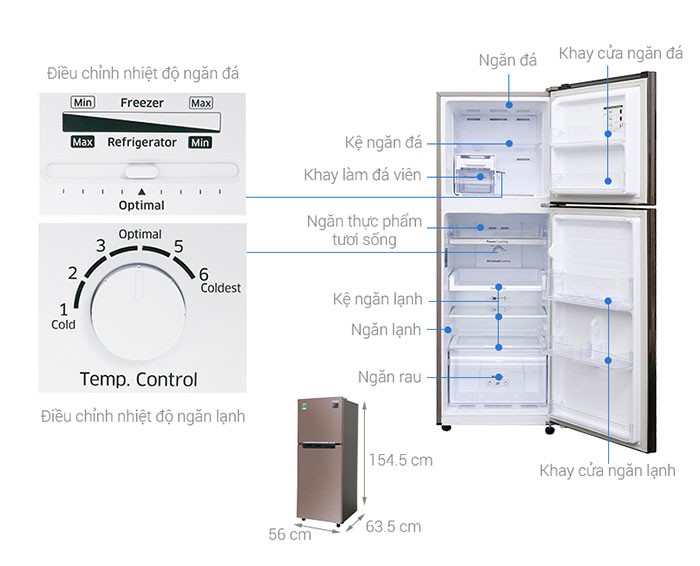 Chất liệu cửa tủ lạnh:Kim loại phủ sơn tĩnh điện