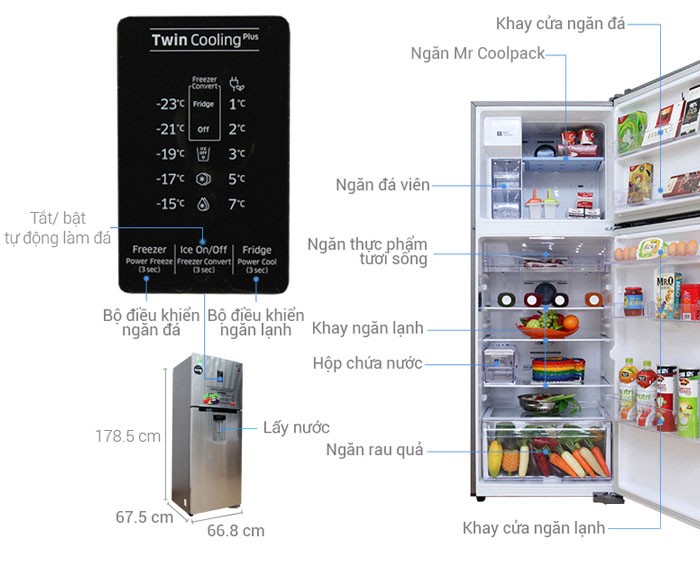 + Chế độ 2 ngăn mát : Bạn sẽ biến ngăn đá bên trên thành ngăn mát nếu như bạn đang cần thêm không gian để bảo quản thực phẩm.